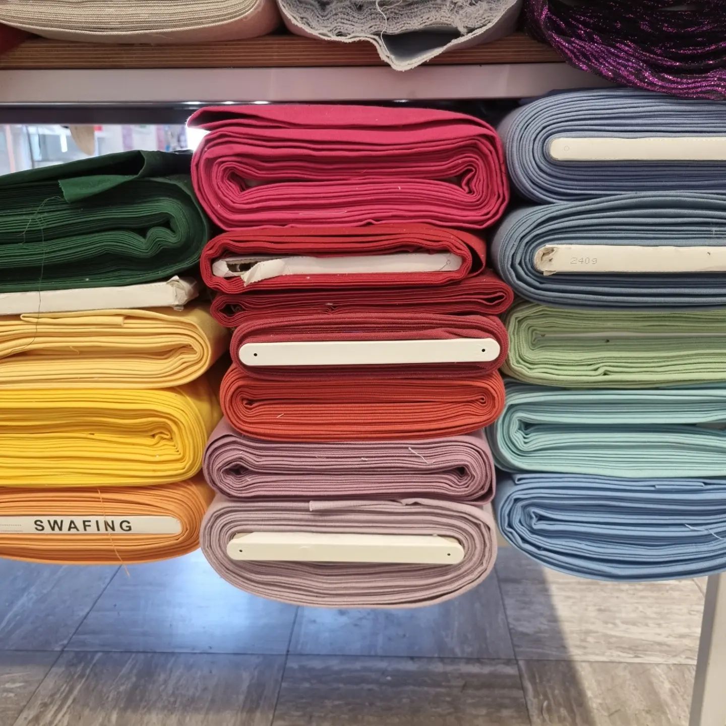 Ateljeesta löydät erilaisia asustepuolen kankaita niin arkeen, juhlaan kuin näytösasuihin. Voit tulla tutustumaan valikoimaamme paikan päälle, verkkokaupassa tai tiedustella sinua kiinnostavasta tuotteesta. Mikäli meillä ei ole tarjota haluamaasi tuotetta, pyrimme löytämään sen puolestasi ja toimittamaan suuntaasi sovitussa ajassa.
